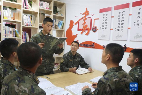 中共中央總書記、國家主席、中央軍委主席習(xí)近平24日下午出席軍隊(duì)領(lǐng)導(dǎo)干部會(huì)議時(shí)發(fā)表的重要講話,在解放軍和武警部隊(duì)引起強(qiáng)烈反響。這是南部戰(zhàn)區(qū)陸軍第74集團(tuán)軍某合成旅“大渡河連”組織官兵認(rèn)真學(xué)習(xí)習(xí)主席重要講話(10月25日攝)。新華社發(fā)(薛健 攝)