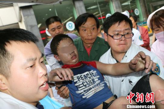 傷者送到醫(yī)院,醫(yī)護(hù)人員全力救治。鐘欣攝