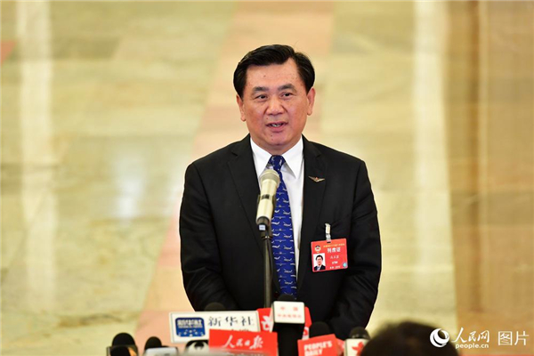 中國民用航空局局長馮正霖正在接受記者采訪……