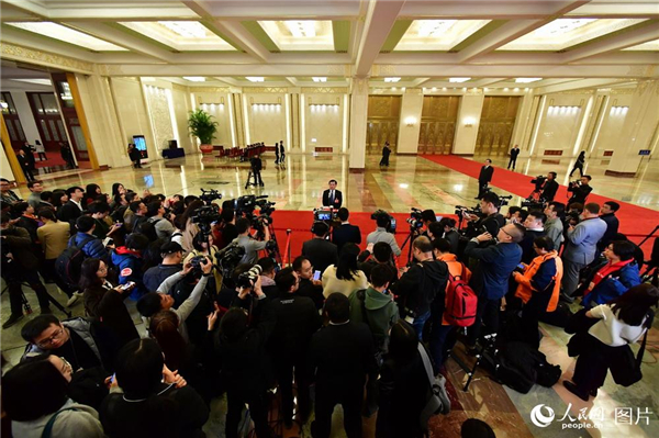 3月3日下午,全國政協(xié)十三屆二次會議開幕會結束后,2019年全國兩會“部長通道”在人民大會堂正式開啟,部長們在這里直面熱點,回應關切。人民網記者 于凱 攝……