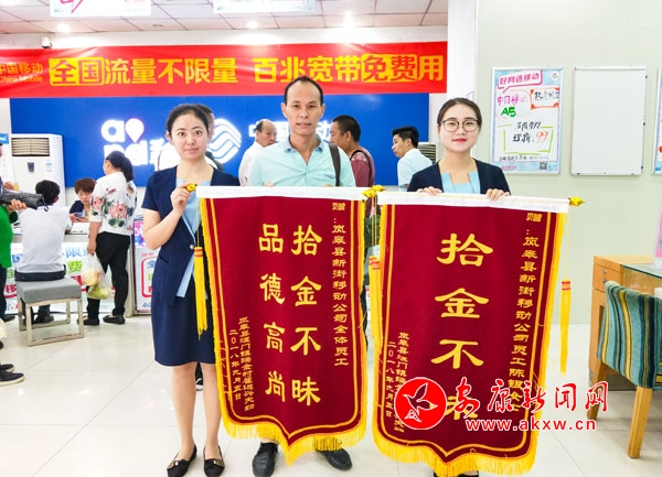 今天,翟先生特意為陳銀及嵐皋營業(yè)班送來了錦旗,現(xiàn)場客戶及工作人員對營業(yè)員陳銀拾金不昧的高尚情操和品德報以熱烈掌聲。