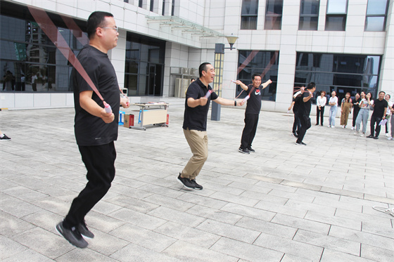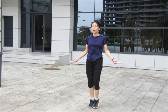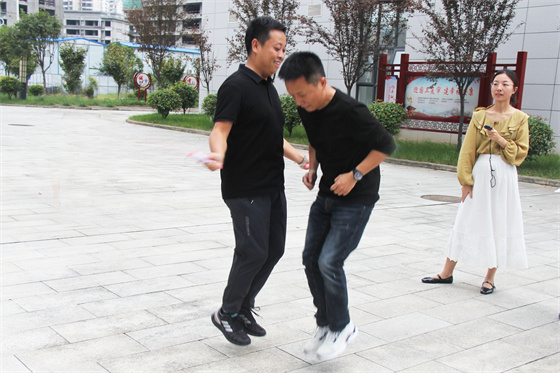 雙人項目考驗的是默契度和耐力,不少組合也亮點紛呈,有面對面跳的,有側身對面跳的,還有背對著跳的,不管姿勢如何,共同的節(jié)奏是保持勝利的關鍵,當然雙人跳到最后還得拼體力,不少選手氣息節(jié)奏被打亂,但大家都咬牙堅持,沒人選擇放棄,哪怕絆亂了繩子一次次重來也要堅持到最后一秒,周圍同事也不斷為場上選手加油鼓勁,氣氛相當熱烈。t2c安康新聞網(wǎng)