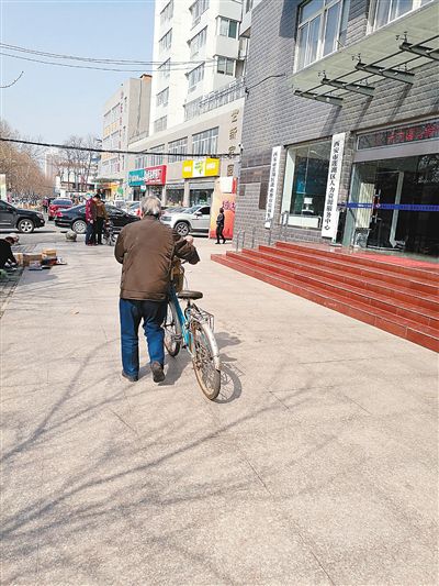 昨日中午,姜全榮推著自行車急著回家陪兒子做透析。