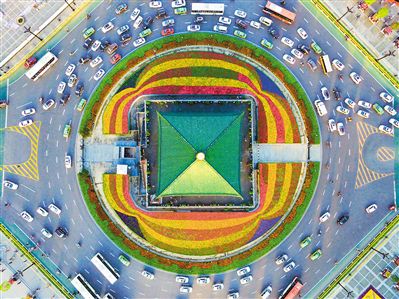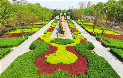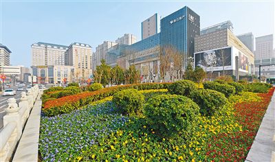 南二環(huán)道路中央?yún)^(qū)域鮮花盛開(kāi),綠草茵茵。 記者 謝偉 攝