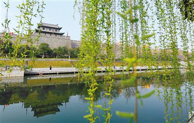 南門(mén)附近綠柳成蔭 記者 張宇明 攝
