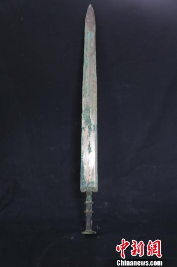 考古人員在一座秦人墓葬中發(fā)掘出土了保存完整的銅劍一柄,通長60厘米。屬于傳統(tǒng)的“周式”長劍,一體連鑄,束腰及八面體的劍身有很強(qiáng)的殺傷力。