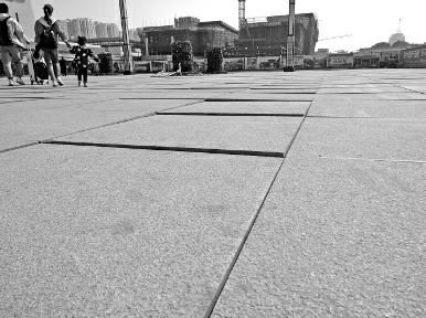 4月4日,華商報記者來到漢中站南廣場,在市民所反映的地方(廣場進站口和出站口之間),看到大概有百余塊地磚沒鋪平整,磚與磚之間有很寬的縫隙,高低不平,有的地方還突出了大約2厘米。走在上邊像踩蹺蹺板,如果不注意極易磕絆甚至摔倒。