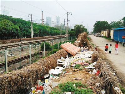 僅一護欄之隔,一邊是隴海鐵路線,一邊是綿延一百多米的垃圾堆。近日,有市民向本報反映,建章路隴海鐵路橋附近堆積著建筑垃圾和生活垃圾,不僅影響城市形象,也給附近居民出行帶來不便。