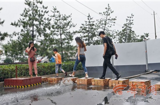 華商報訊去年“跳一跳”的小游戲成了爆款,近日位于北辰路的王家棚廉租住房小區(qū)馨和居上萬居民體驗了一把現(xiàn)實版的“跳一跳”,不過他們是因為進出小區(qū)的東門被雨水混著污水“封了門”,無奈之下只能臨時在壘起的磚頭上跳躍通過。CqW安康新聞網(wǎng)