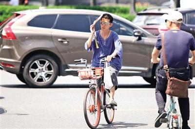 午間時(shí)段出行,太陽依舊火辣 記者 王曉峰攝