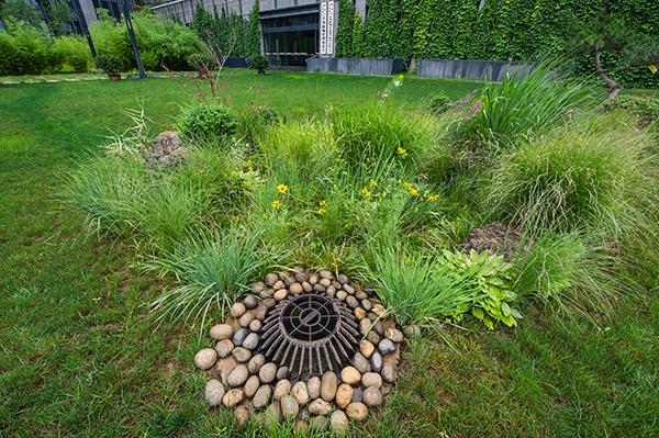 再配合生態(tài)植草溝、下凹式綠地、雨水花園蓄滯雨水的能力,即便適逢大雨天,云谷園區(qū)也能自己消納降水,避免出現(xiàn)內澇。