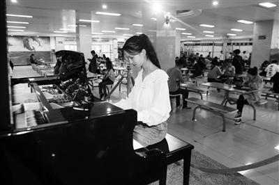 學(xué)生在食堂里彈鋼琴 記者 黨運(yùn)攝