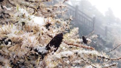 昨日15時,太白山天圓地方景點(diǎn)地面上的積雪已達(dá)3—4厘米。 賈新輝 記者 代澤均 攝