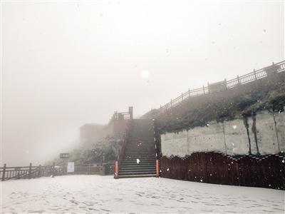 據(jù)太白山天下索道工作人員湯敏介紹,當(dāng)日1時20分,在海拔3511米的天圓地方景點(diǎn)就開始有雨夾雪出現(xiàn)。到了13時左右降雪強(qiáng)度逐漸增大,整個太白山頂霎時銀裝素裹、分外妖嬈。而到當(dāng)日15時,天圓地方景點(diǎn)地面上的積雪已達(dá)3–4厘米。