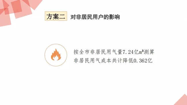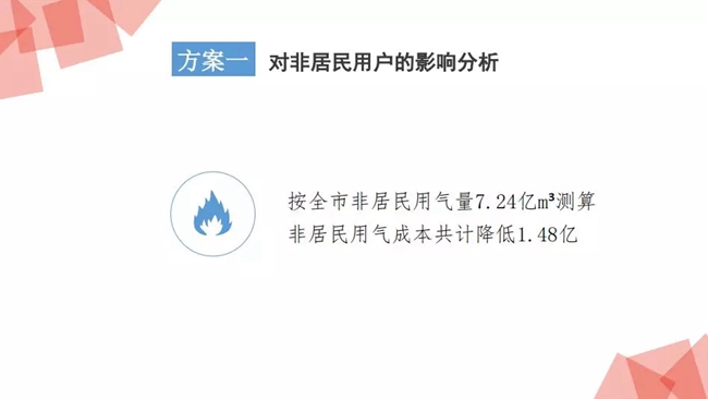 非居民用氣售價由現(xiàn)行的2.30元每立方米調整為2.25元每立方米,下調0.05元每立方米。