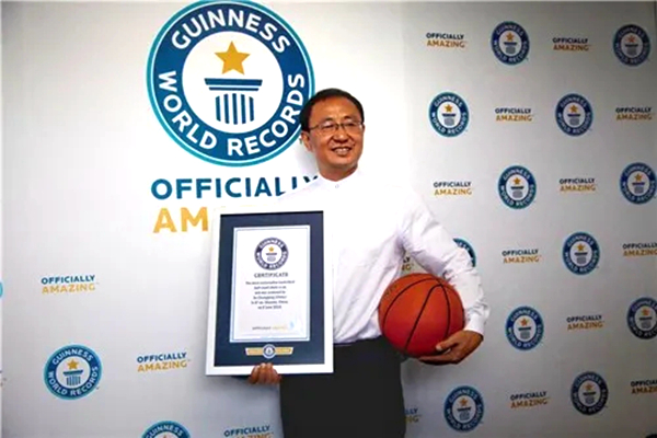 (徐長清2016年打破半場超遠投籃六連中吉尼斯世界紀錄時領(lǐng)獎留影 攝影 姚建宇)