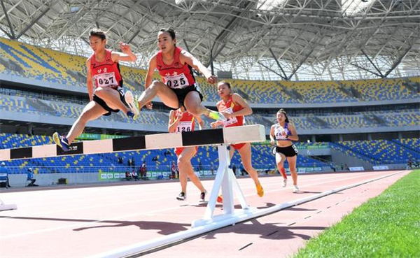 4月28日,在陜西西安舉行的第十四屆全國運(yùn)動(dòng)會(huì)田徑項(xiàng)目測試賽暨2021年田徑分區(qū)邀請(qǐng)賽(西北賽區(qū))女子組3000米障礙決賽中,甘肅隊(duì)選手田萬花(前右)以10分29秒09的成績獲得冠軍。新華社記者李一博 攝