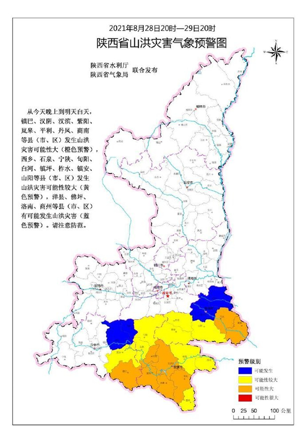 陜西省水利廳與陜西省氣象局聯(lián)合發(fā)布山洪災(zāi)害氣象預(yù)警:預(yù)計(jì)2021年8月28日20時(shí)至2021年8月29日20時(shí),鎮(zhèn)巴、漢陰、漢濱、紫陽(yáng)、嵐皋、平利、丹鳳、商南等縣(市、區(qū))發(fā)生山洪災(zāi)害可能性大(橙色預(yù)警),西鄉(xiāng)、石泉、寧陜、旬陽(yáng)、白河、鎮(zhèn)坪、柞水、鎮(zhèn)安、山陽(yáng)等縣(市、區(qū))發(fā)生山洪災(zāi)害可能性大(黃色預(yù)警),洋縣、佛坪、洛南、商州等縣(市、區(qū))有可能發(fā)生山洪災(zāi)害(藍(lán)色預(yù)警)。請(qǐng)注意防范。fVX安康新聞網(wǎng)