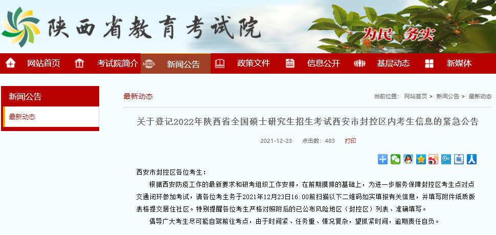 @西安市封控區(qū)考生 陜西省教育考試院發(fā)布緊急公告!