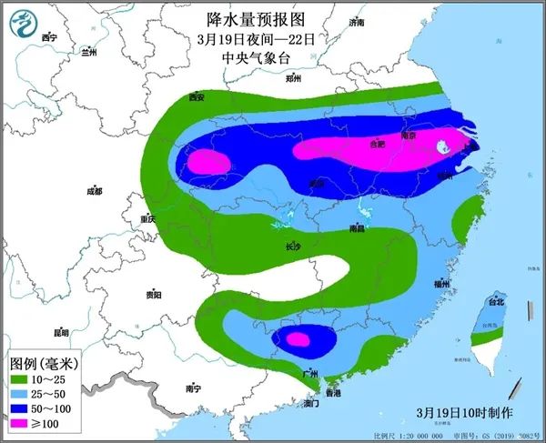 預(yù)計(jì),3月20日08時(shí)至21日08時(shí),四川盆地東北部、陜西東南部、湖北、河南南部、安徽中南部、江蘇南部、上海、浙江北部等地有大雨,其中,重慶北部、陜西東南部、湖北北部和東部、河南東南部、安徽中部和西南部、江蘇南部、上海、浙江北部等地部分地區(qū)有暴雨,局地有大暴雨(100~120毫米),上述部分地區(qū)伴有短時(shí)強(qiáng)降水(最大小時(shí)降雨量20~40毫米,局地可超過(guò)50毫米),局地有雷暴大風(fēng)或冰雹等強(qiáng)對(duì)流天氣。
