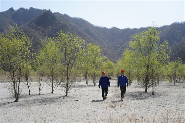4月7日,金堆城鉬業(yè)集團(tuán)有限公司工作人員在經(jīng)過生態(tài)治理后的木子溝尾礦庫內(nèi)巡查。新華社記者 邵瑞 攝