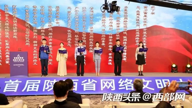 5月30日,首屆陜西省網(wǎng)絡(luò)文明大會(huì)在渭南召開。會(huì)上,陜西好青年代表、陜西省崗位學(xué)雷鋒標(biāo)兵李甜甜,中國(guó)好人、全國(guó)向上向善好青年韓紅輝,陜西文旅推薦使者、陜西好網(wǎng)民馮佳晨,中國(guó)好人、陜西省道德模范曹金生,陜西好網(wǎng)民代表、西安電子科技大學(xué)學(xué)生王冠玉,渭南市瑞泉中學(xué)學(xué)生云漢宸等共同發(fā)布《共建網(wǎng)絡(luò)文明倡議書》。
