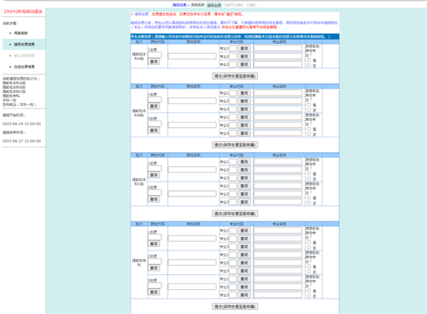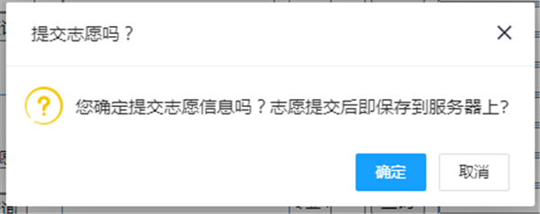 全部志愿信息輸入完畢后,必須點擊“提交”按鈕,否則服務(wù)器無法接收到志愿信息。全部志愿確定無誤后,必須點擊“確認(rèn)”按鈕。在點擊“確認(rèn)”按鈕之前,可以任意修改所填志愿。