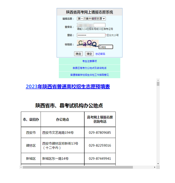 1.考生憑網(wǎng)上報名時所用報名號(14位)或準(zhǔn)考證號(10位)及密碼登錄網(wǎng)上填報志愿系統(tǒng),網(wǎng)址為陜西省教育考試院門戶網(wǎng)站(https://www.sneea.cn)或陜西招生考試信息網(wǎng)(https://www.sneac.com)。