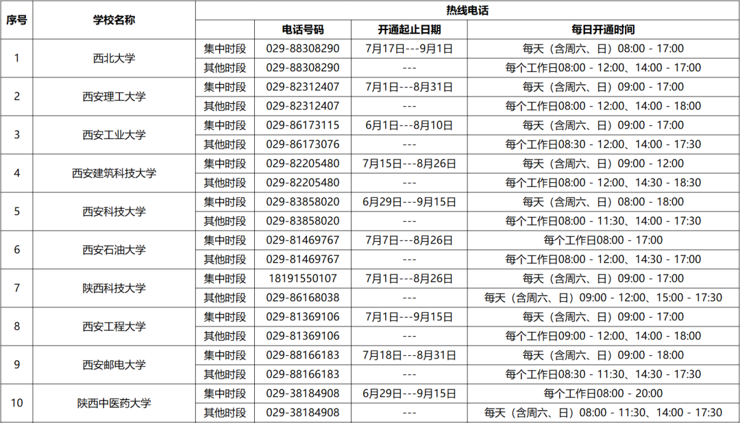 為幫助廣大學(xué)生和家長及時準(zhǔn)確了解國家資助政策,申請獲得相應(yīng)資助,陜西省地方高校本?茖W(xué)段每年暑期均開通熱線電話。