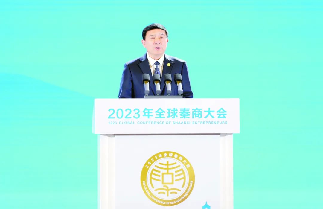 陜煤集團(tuán)黨委書(shū)記、董事長(zhǎng)張文琪在2023年全球秦商大會(huì)開(kāi)幕式上發(fā)言。