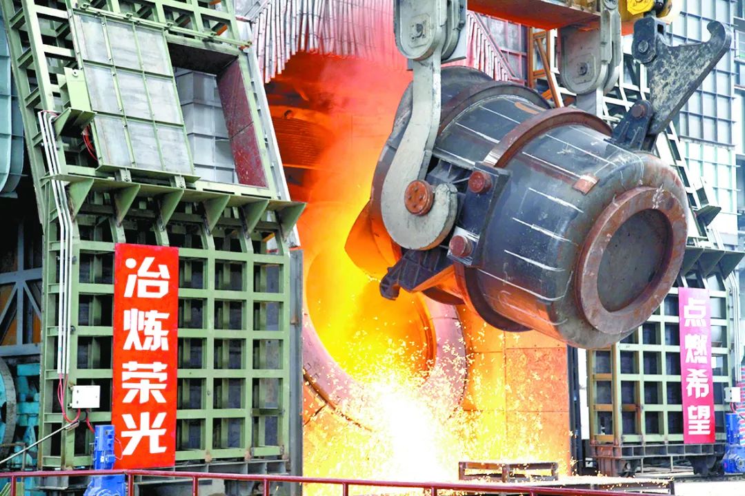 陜鋼集團(tuán)漢鋼公司煉鋼廠轉(zhuǎn)爐車間生產(chǎn)現(xiàn)場(chǎng)。