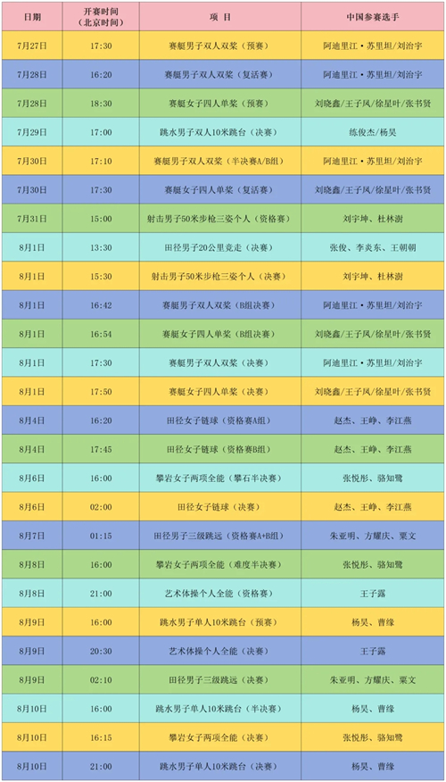 目前,十名運(yùn)動(dòng)員的賽程已確定,具體如下↓↓↓