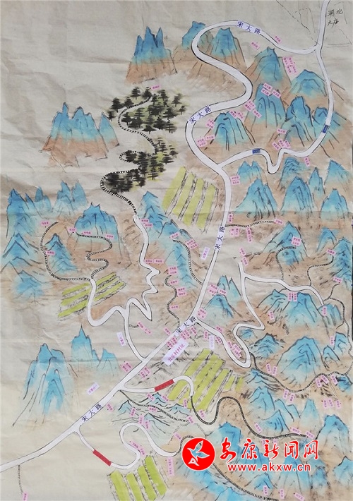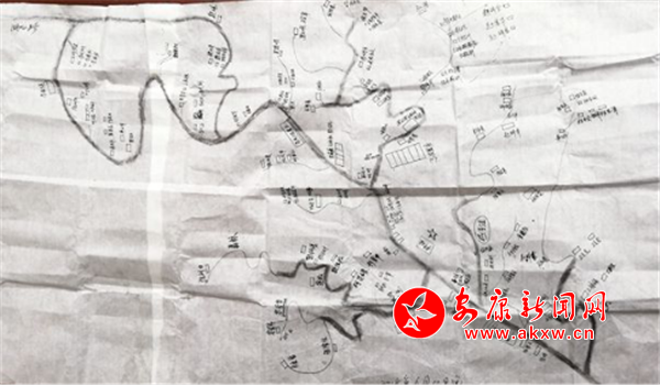 在一張大白紙上,左士霆用鉛筆勾勒出安樂村的主要地形和道路。夜深人靜時,他又一戶戶標記出當天走訪的貧困戶住址。駐村以來,他走遍了安樂村的溝溝壑壑,將村里主要路線、地勢地形、貧困戶的居住點勾勒連接成片,繪制成“地圖”,整個村情一目了然。