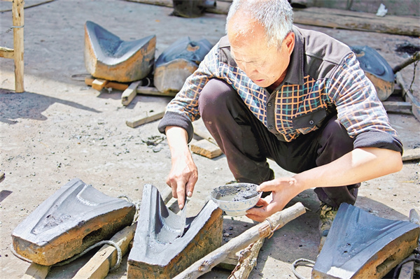 宋祖新的叔祖父是當(dāng)年鏵廠的“掌勺”師傅之一,在一次次觀看大人們操作中,他也學(xué)會了從制模到熔鐵澆鑄一整套鑄鏵技術(shù)。隨著農(nóng)業(yè)科技的發(fā)展,傳統(tǒng)的鐵鏵制作工藝逐漸被機(jī)械化生產(chǎn)所取代,但在陜南一些山區(qū)坡地仍延續(xù)著犁鏵耕作方式。“前些年,多數(shù)人都選擇外出務(wù)工,種地的少,好多年沒有開爐鑄鏵了,很多年輕人都沒有親自體驗過制作過程,聽說我們這兒又開始鑄鏵,連縣城的人都趕來看稀奇!”宋祖新說。