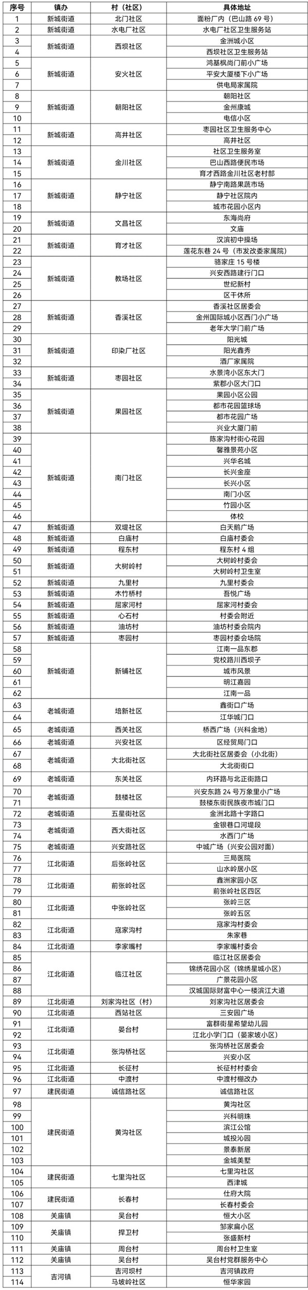 附件:漢濱區(qū)中心城區(qū)全員核酸檢測采樣點(diǎn)一覽表