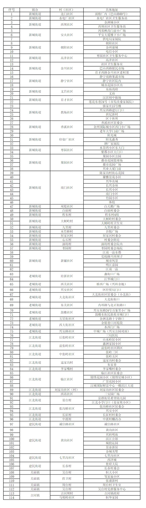 附件:漢濱區(qū)中心城區(qū)全員核酸檢測采樣點(diǎn)一覽表