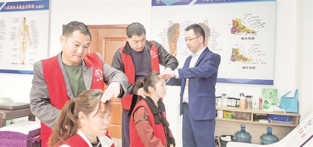 為確保每位參訓學員聽得懂、看得清、學得會,周元富不厭其煩地將每一套動作分解為通俗易懂的語言,配合緩慢而精準的示范,反復講解,直至所有人掌握要領。對于擁有15年從業(yè)經(jīng)驗的周元富而言,相比于保健按摩技能傳授,參訓學員的心理建設需要投入更多心力。許多參訓學員初來時思想負擔重,情緒波動大,既擔心學不會技能,更憂慮未來的就業(yè)與收入。面對這些特殊的教學對象,周元富一度感到棘手。經(jīng)過3年的實踐摸索,他將豐富的一線經(jīng)驗與耐心、熱情相結合,逐步找到溝通與激勵的方法,幫助參訓學員卸下包袱,樹立信心,從容面對學習與未來的職業(yè)之路。