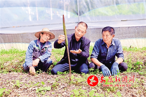 原來,這兩位是鄰村的村民,利用雨天農(nóng)閑時(shí)間,專程來向他請(qǐng)教魔芋追肥和病蟲防治技術(shù),早上到家問過王永成的妻子后,一路找到了地頭。