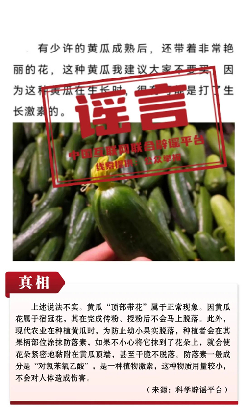 謠言10:黃瓜頂部帶花是因?yàn)榇蛄思に兀荒艹裕?/strong>