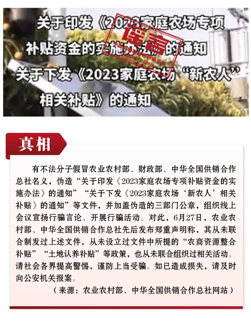 謠言1:三部門聯(lián)合發(fā)文將發(fā)放家庭農(nóng)場(chǎng)等專項(xiàng)涉農(nóng)補(bǔ)貼?