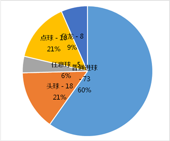 本屆世界杯關(guān)于進(jìn)球的另一個(gè)感受就是點(diǎn)球的增加,由于VAR視頻助理裁判技術(shù)的引入,本屆世界杯小組賽共打進(jìn)了18粒點(diǎn)球,而任意球直接破門也有5粒,均超過(guò)了上屆世界杯;而從進(jìn)球方式來(lái)看,定位球(直接任意球和點(diǎn)球)的直接破門共有23粒,依靠定位球(任意球和角球)戰(zhàn)術(shù)打入的進(jìn)球有27粒,而依靠運(yùn)動(dòng)戰(zhàn)打入的進(jìn)球有72粒;
