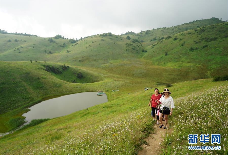 在陜西嵐皋縣與重慶城口縣交界處的大巴山主脊上,坐落著一片高山草甸——神田草原。入夏,這里碧草千頃,野花漫山,氣溫涼爽,云霧變幻,成為游客休閑避暑的好去處。 新華社記者 邵瑞攝bKn安康新聞網(wǎng)