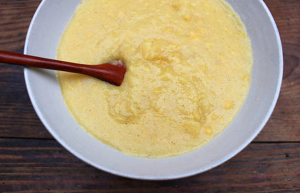 看!那磨得不粗不細(xì)的玉米糝在沸騰的開水鍋中上下翻滾,吹出一個(gè)個(gè)密匝匝黃金泡泡,如同平靜的湖面被雨水打過一樣,泛起一串串漣漪,直到它煮的黏的可以用鍋鏟舀起來,朝碗里倒的能夠連接的時(shí)候,才可以把糊豆兒盛出來食用。吃糊豆兒的絕配,要數(shù)豆豉、酸菜、酸辣土豆片……盛飯的時(shí)候,最好先用涼水將碗打濕,這樣后面洗碗的時(shí)候才方便快捷;吃的時(shí)候,最好從碗邊一口一口慢慢吃,吃快了會(huì)燙嘴哦,吃完后的碗也是干干凈凈的。糊豆兒,有很多種做法,依據(jù)個(gè)人口味“百搭”。拌一些酸菜煮,叫酸菜糊豆兒;放一些綠豆煮,叫綠豆糊豆兒;加一些紅薯煮,叫紅薯糊豆兒;加上一些時(shí)鮮綠色蔬菜,出來的糊豆兒猶如一碗翡翠,既好看又好吃?傊,可以放放放、加加加、搭搭搭、配配配……只要你喜歡!