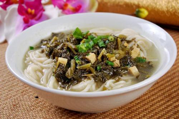 我的家鄉(xiāng)在山水環(huán)繞、滿眼皆綠的秦巴山區(qū)小城——中華太極城——旬陽縣。好山好水孕育出了眾多的美味食物,其中最具代表的要數(shù)“酸菜面”,也叫“漿水面”,它當(dāng)之無愧的坐上了頭把交椅。好吃的酸菜面,自然要有泡的夠酸夠脆的酸菜和筋道的兩摻面,兩摻面是由豌豆面和小麥面和制而成。泡了兩三日的酸菜與手工搟好的兩摻面搭配在一起,一碗熱氣騰騰的酸菜面就盛到你的面前,若是再加上自家做的大蒜辣子,真是讓人胃口大開、大口朵頤、精神倍爽。特別是在夏天,或是在酒醉后的第一餐,嚼起清脆的酸菜、筋道的兩摻面、清香的大蒜辣子,頓時(shí)讓人滿口生香、酣暢淋漓、回味無窮,就會(huì)忍不住要多吃幾口。多種味道混合起來產(chǎn)生奇異的味覺沖擊,酸的爽快,辣的夠味。最后,再喝上幾口熱氣騰騰的面湯,直吃得要撐破肚皮才罷休。