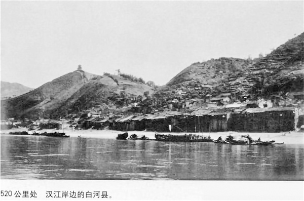 1918年漢江南岸的白河縣城河街。 (美)G.A.凱爾 攝