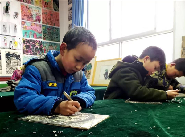 孩子們雖居窮鄉(xiāng)僻壤,卻有著走出大山的夢想;雖多是留守兒童,卻有著與親情團(tuán)聚的渴望。他們拿畫筆、刻刀當(dāng)玩具,在紙上,在版上,揮灑情感,釋懷心志,于是鄉(xiāng)村兒童版畫便應(yīng)運而生,這是一個值得社會關(guān)注和聚焦打造的文化現(xiàn)象。