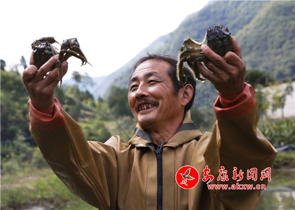 金秋時(shí)節(jié),秦巴處處穰穰滿家。進(jìn)入漢濱區(qū)茨溝鎮(zhèn)營(yíng)盤埡村水產(chǎn)養(yǎng)殖基地,蟹農(nóng)游石平正忙著下地籠挑選螃蟹,送往安康、西安等市場(chǎng)銷售。2018年,游石平在營(yíng)盤埡村流轉(zhuǎn)20多畝水田養(yǎng)殖大閘蟹,平均每畝養(yǎng)殖水面產(chǎn)蟹500斤,每斤60元,今年收入有望達(dá)到60萬元。Kzx安康新聞網(wǎng)