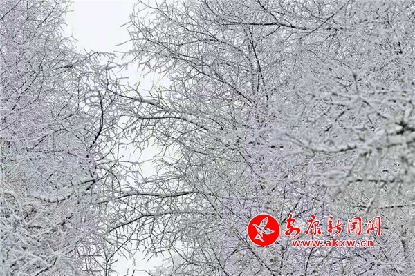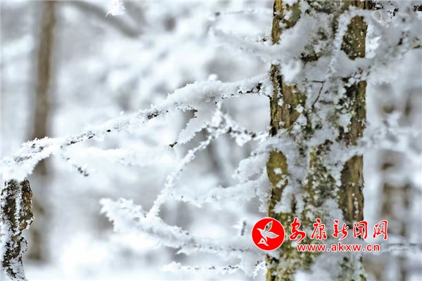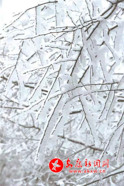 在青松的針葉尖上,在柔韌的枝條末梢,冰凌、霧凇、雪柳、樹掛……鋪天蓋地,肆意飛揚。憑欄遠眺,萬千輕羽蔓延鋪陳,寒山枯色被這天地間的精靈喚醒?丈讲灰娙,但聞雪落聲。